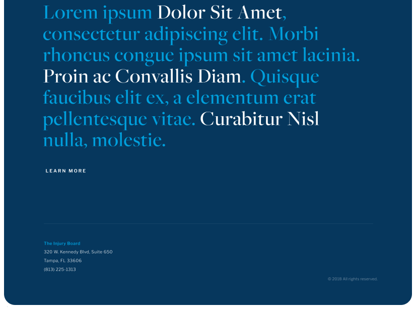 The Injury Board was in the process of changing its rules of membership, particularly its system of acceptance and wanted the site to reflect this new direction. They wanted the new site to convey to users that members form an exclusive group made up of the best of the best and ultimately instill trust. Naturally, stakeholders voiced a desire for the site to stand-out in an elegant way.
