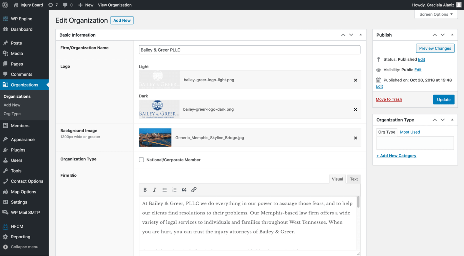 As outlined earlier, creating a good experience for internal users was also a priority for this project. As an organization experienced with WordPress, moving to that platform was a natural next step. We create a custom WordPress theme with custom post types and fields for firms and members and arranged them into intuitive sections for non-technical content editors to fill in the necessary information with ease.