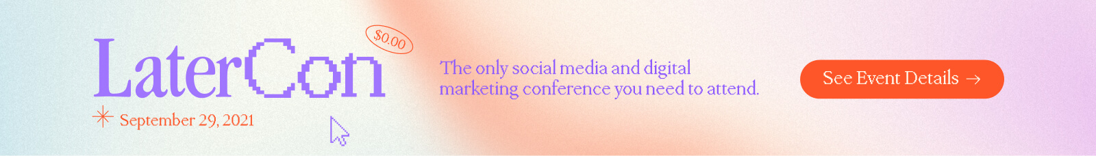 LaterCon is a free educational one-day event run annually and virtually by Later (an all-in-one social media marketing platform) to help small business owners learn how to grow their brand on social media.